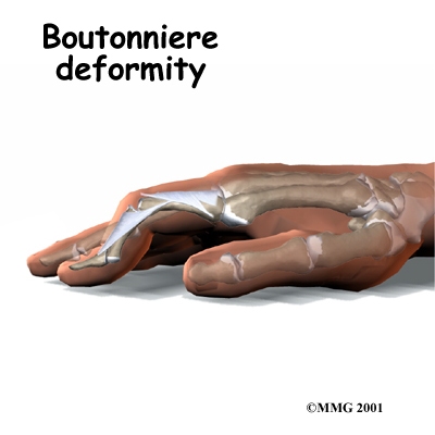 Both rheumatoid arthritis and osteoarthritis can affect the IP joints of the fingers. The IP joints may begin to flex (bend) or hyperextend (over straighten), causing characteristic finger deformities. occurs when the middle finger joint (the PIP joint) becomes loose and hyperextended, while the DIP joint becomes flexed. When the PIP joint flexes and the DIP joint extends, a forms.